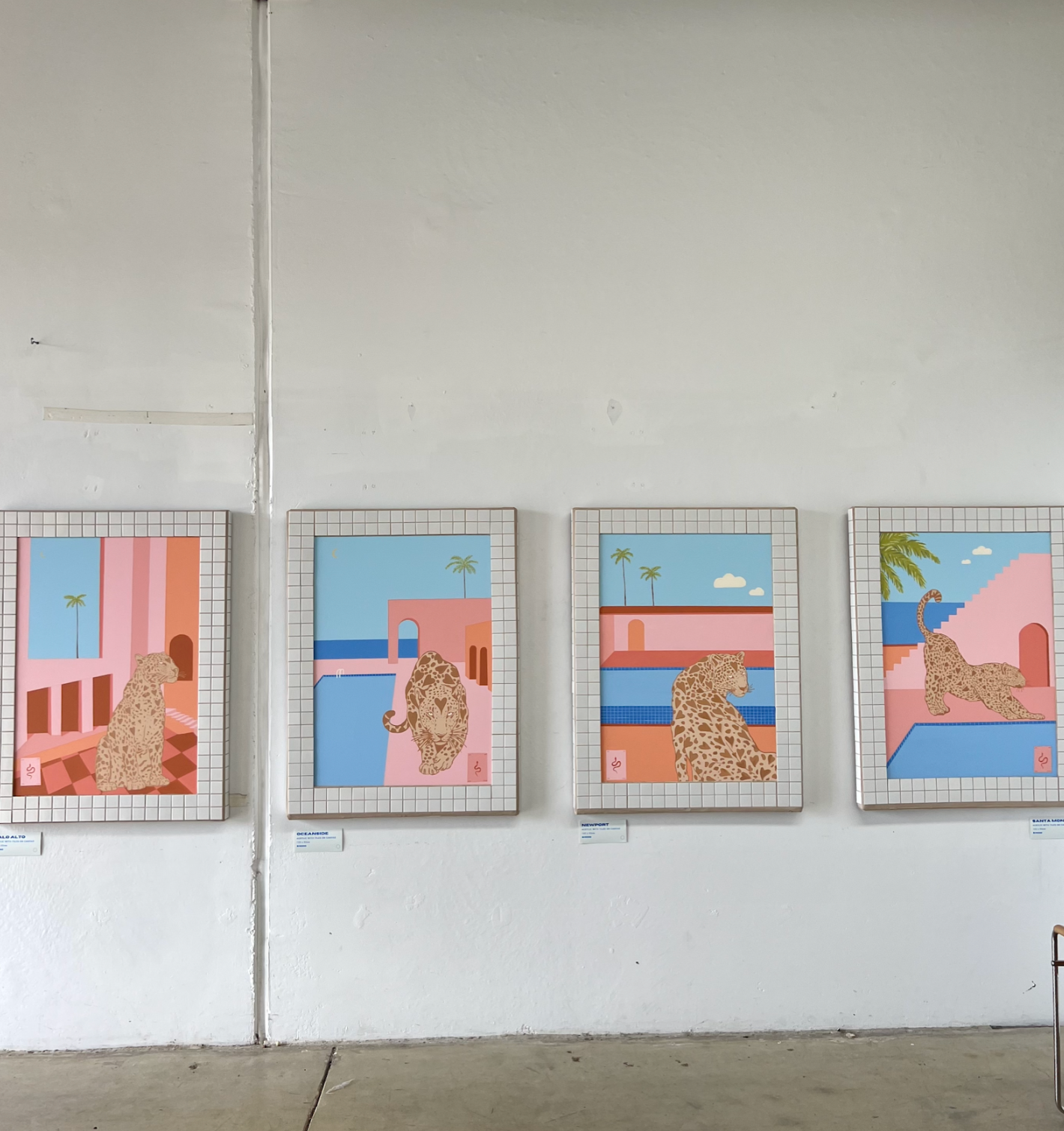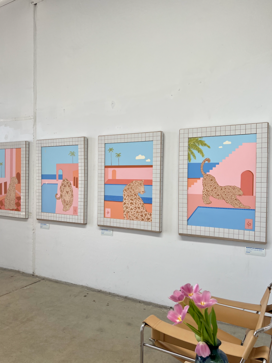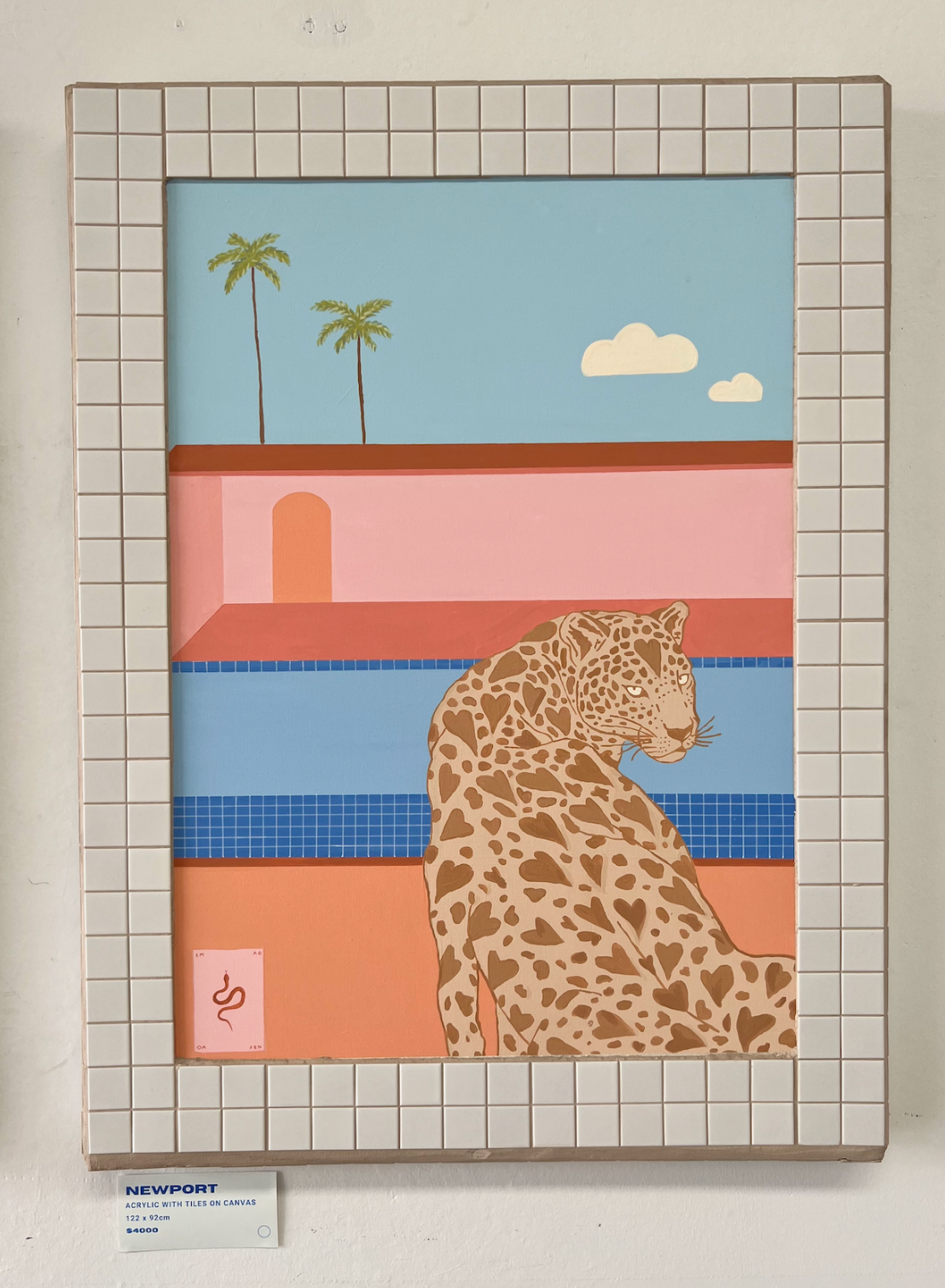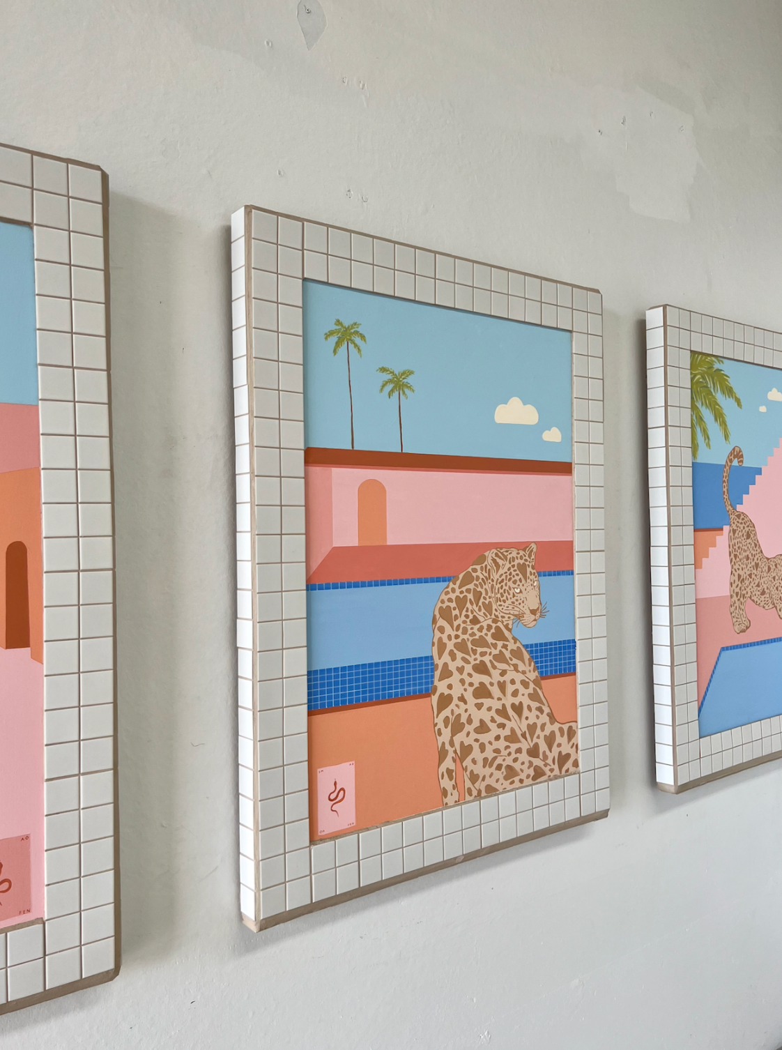 Original Acrylic Painting, on Stretched Canvas with Porcelain White Tile Boarder
