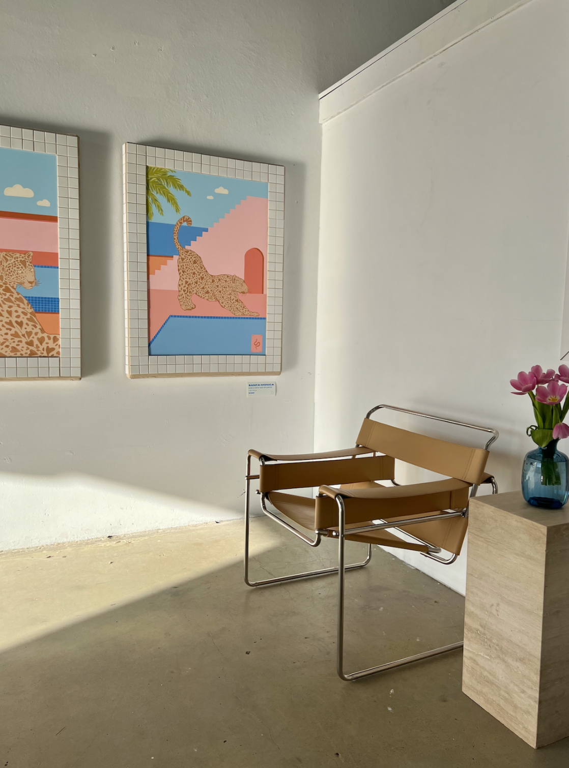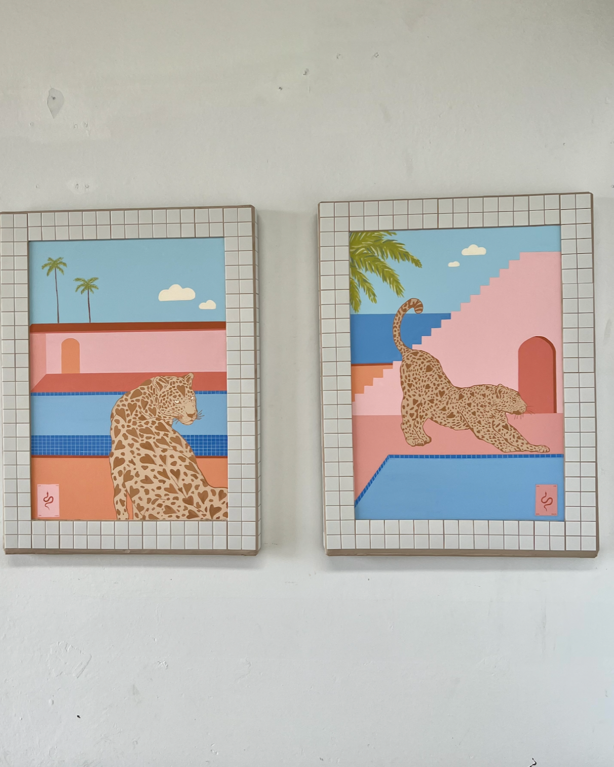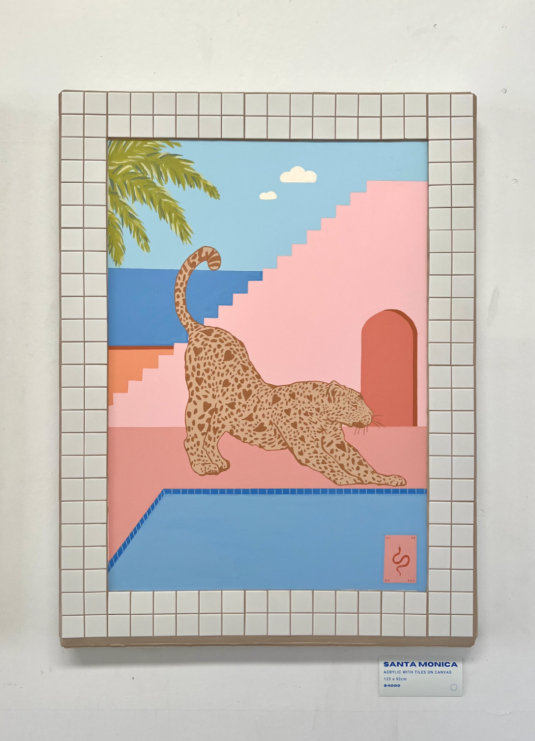 Original Acrylic Painting, on Stretched Canvas with Porcelain White Tile Boarder