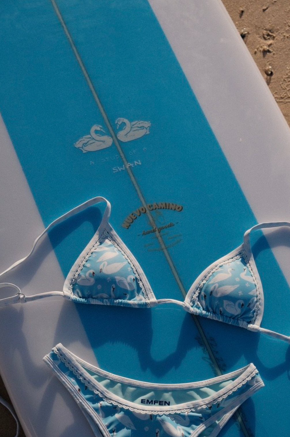 Introducing the Study of a Swan Bikini Top, this bikini top is your new summer staple with double-lined soft fabric, a white lace trim, and the beautiful blue study of a swan print.