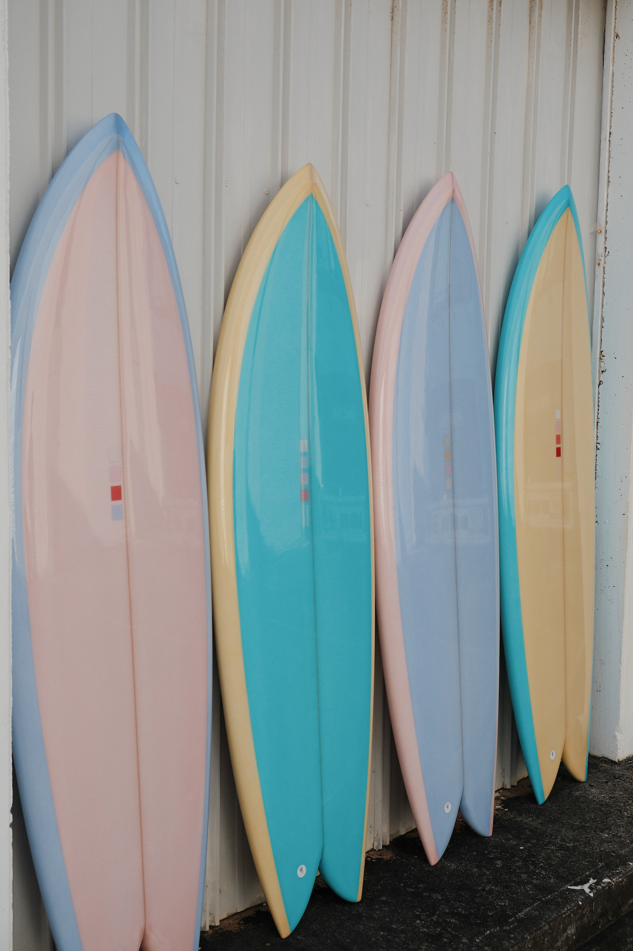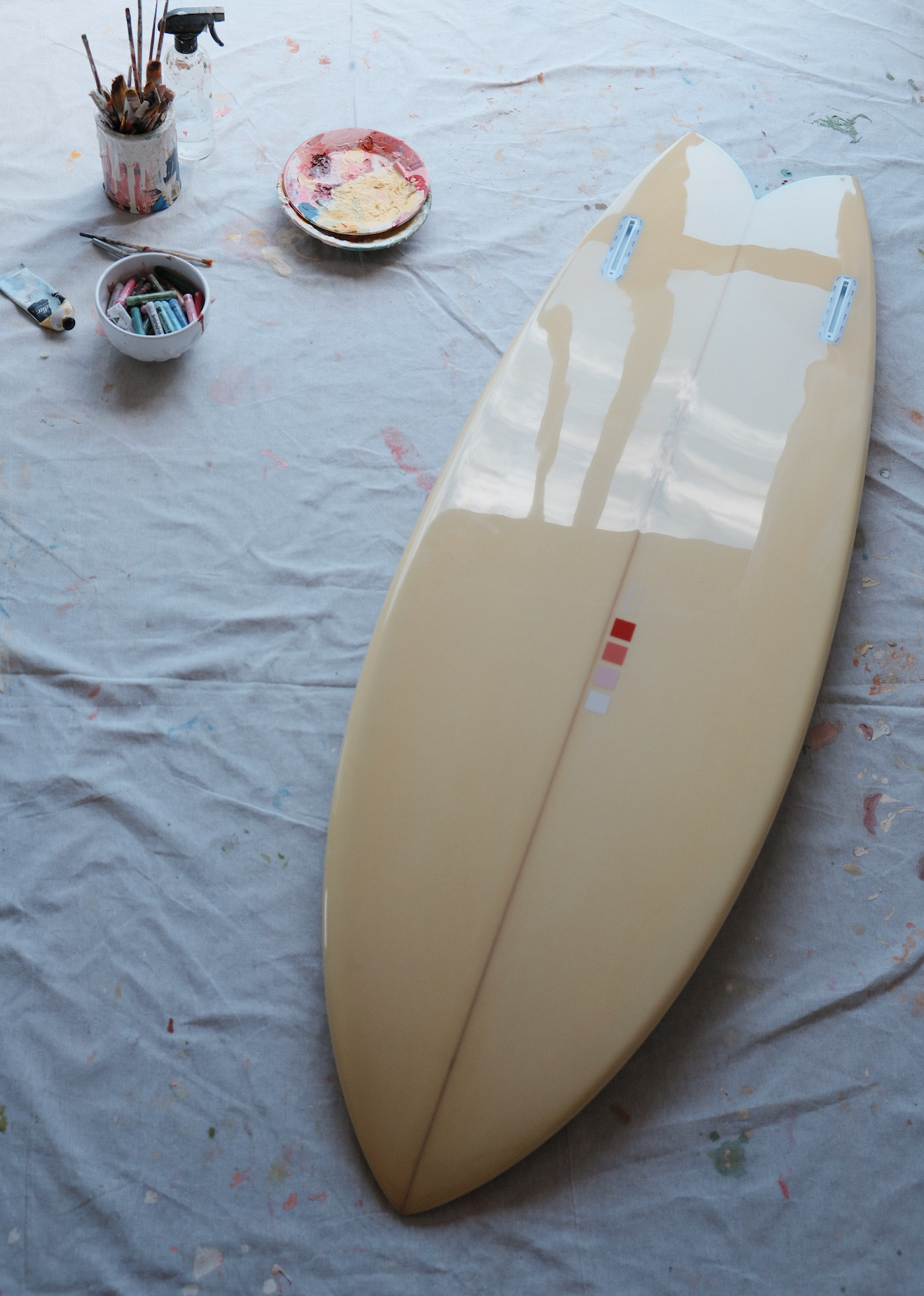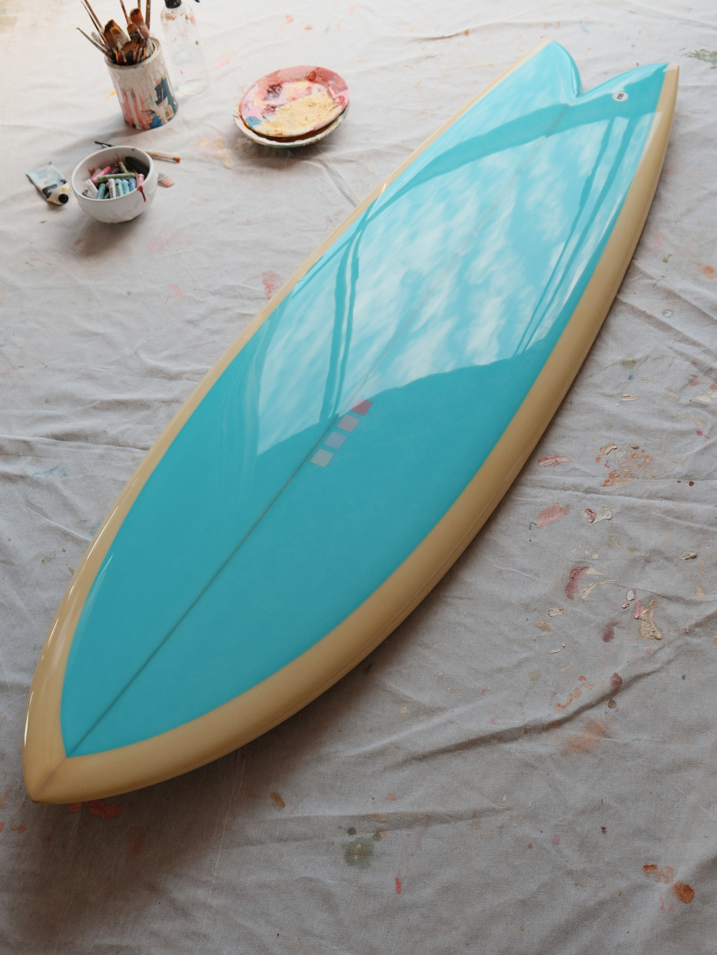 A modern approach on the 80s twins, extra fish like volume & mid-low rocker helps get into waves early & easily with a hip down to a pulled in tail for more control & engagement with a short board feel. The board is a transition between high performance shorty and a ease of use fish, a kind of step up fish for those who still have a bias for a thruster. Can rip loose fun turns in waste high waves but also has the speed and drive to go top to bottom with ease in overhead. To be ridden roughly 2-3 inches shorter then your regular short board & roughly 2-3 inches longer then your fish.